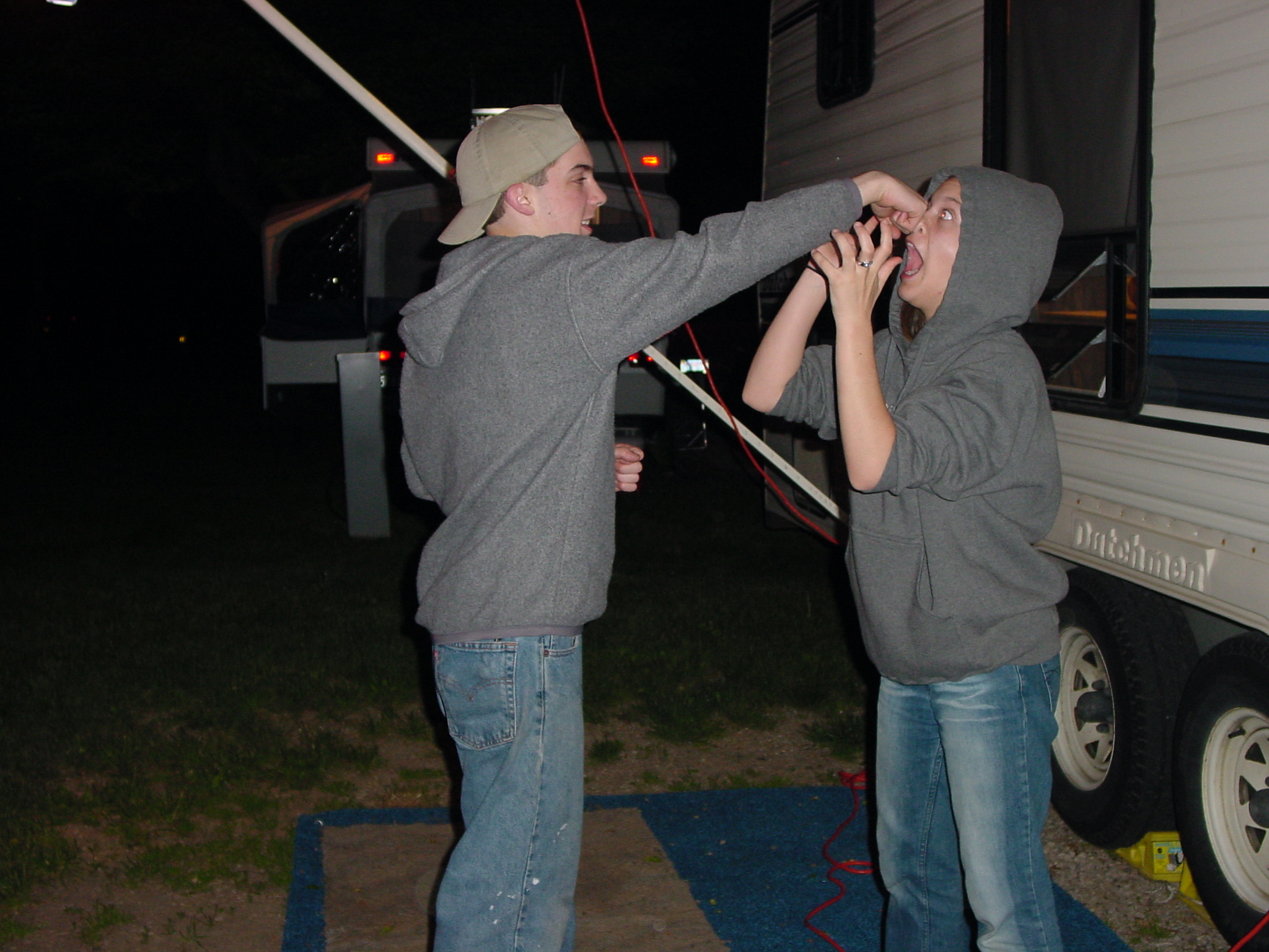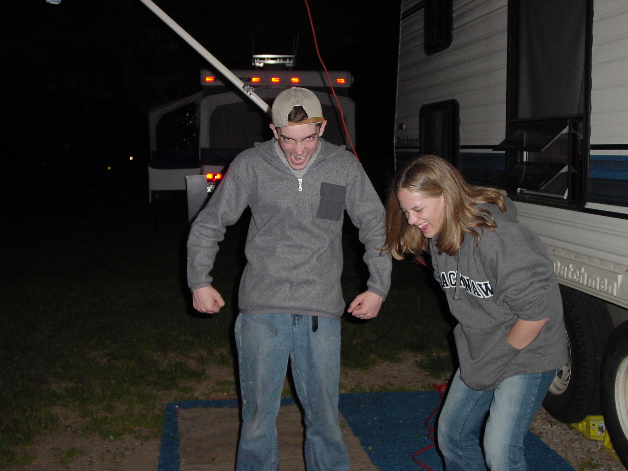 20020601f Burnham Trip Camping Algonac State Park Post-Campfire Clowning Michigan