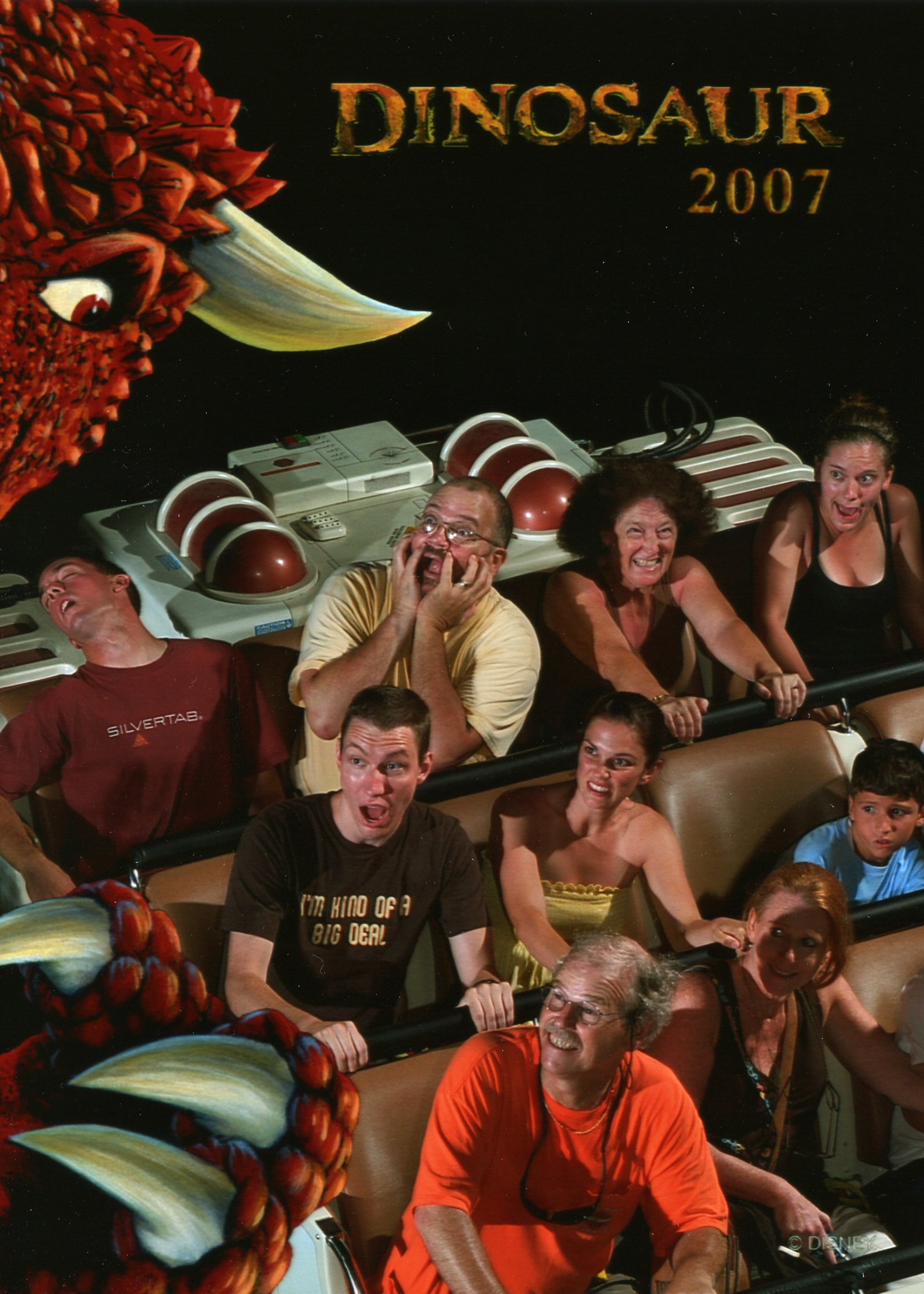 20070805b Burnham Trip Dan Jamie Visiting Disney Animal Kingdom Dinosaur Ride Formal Picture Florida