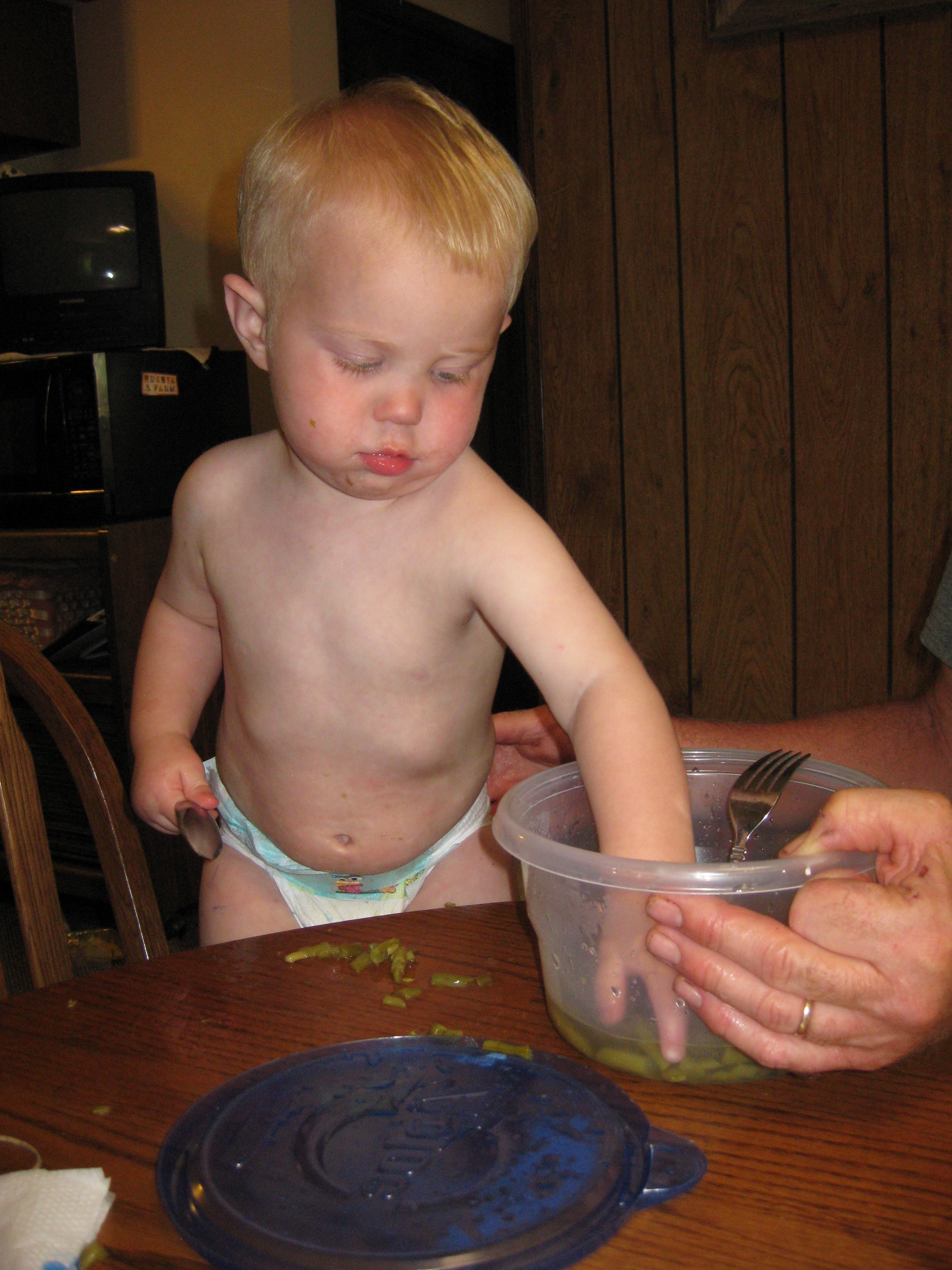 20090709b Mantey McMahan Peyton Swimming With Green Beans