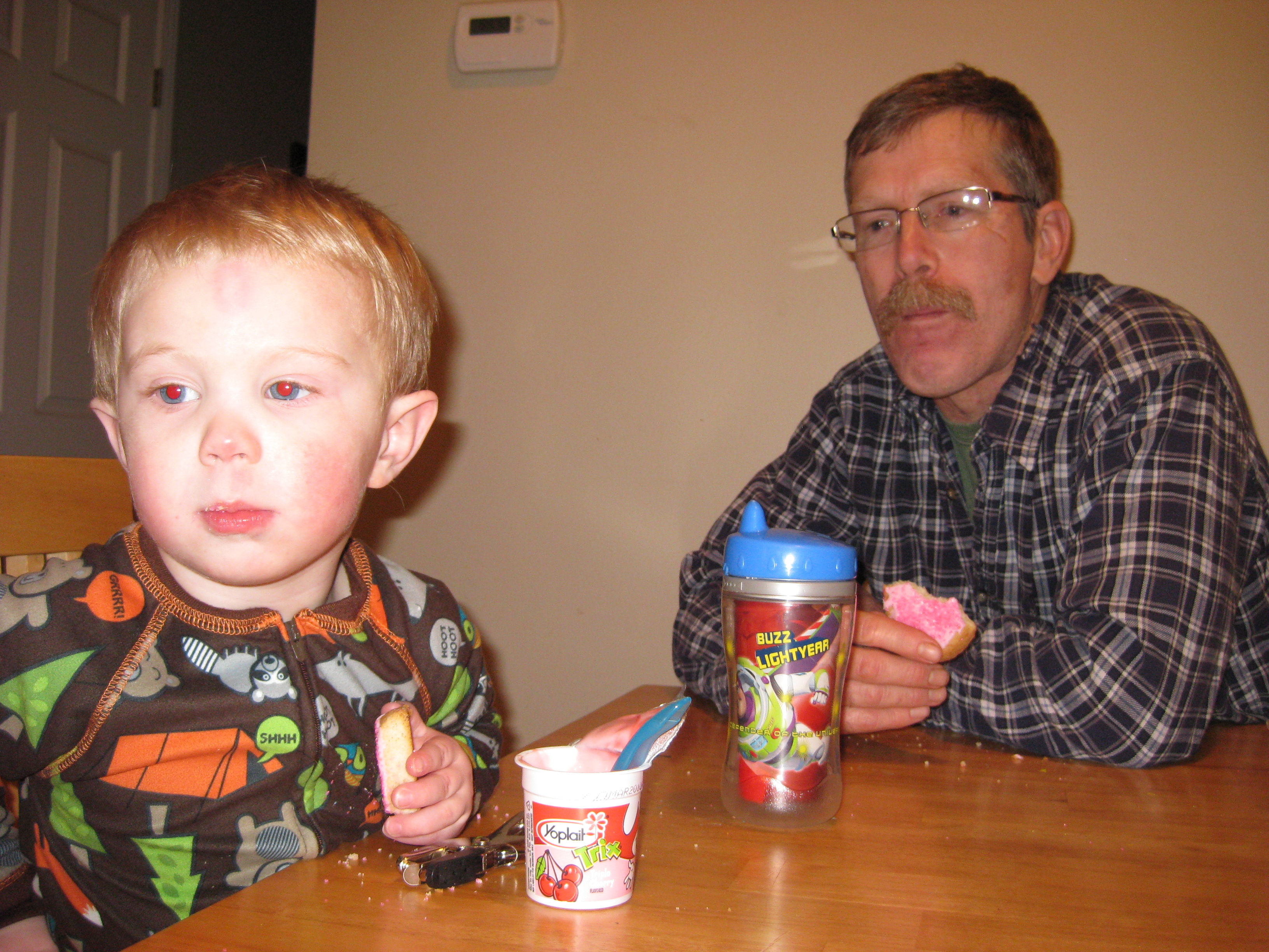 20100208b McMahan Peyton Snack Time With Grampa Joe And Morgan In The Oven