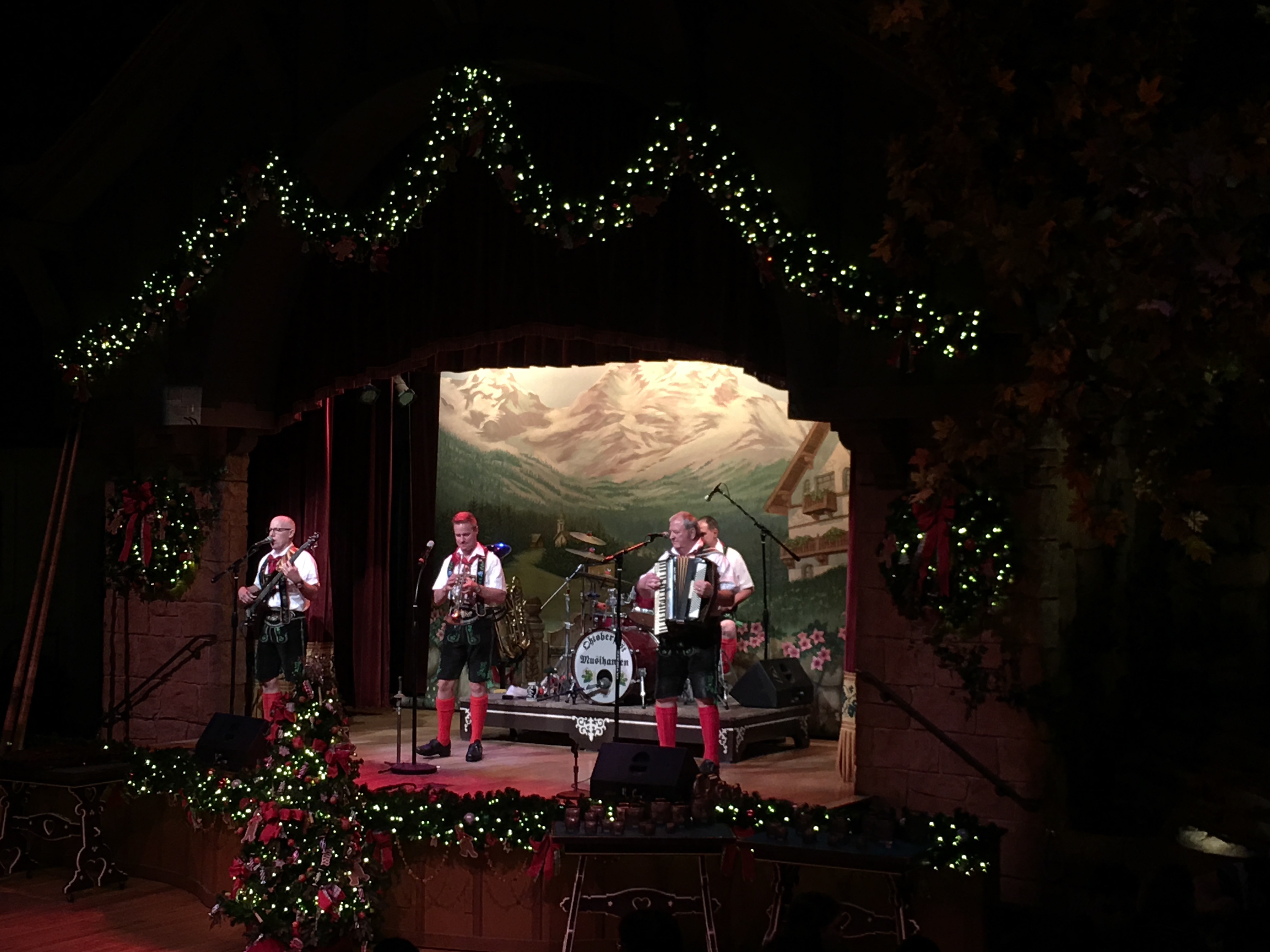 20151227a Boblenz Burnham Longo Mantey Trip Disney Epcot Biergarten Restaurant Florida