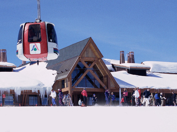 The town of Aspen is tucked neatly at the base of Ajax Photo credit: Biege Jones The Silver Queen Gondola passes the newly constructed Sundeck Restaurant at the top of Ajax Photo credit: Rose Abello Banff